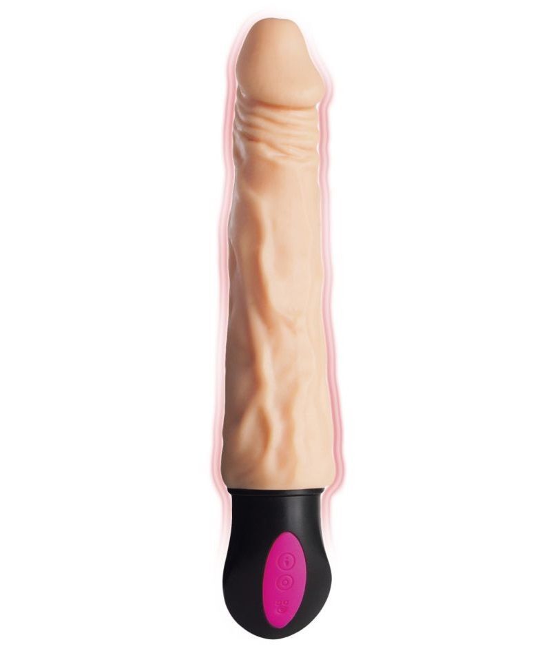 Телесный гнущийся вибратор с функцией нагрева - 19 см.