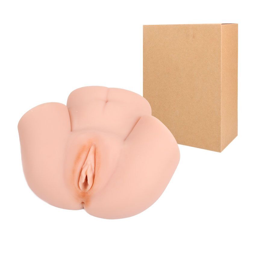 Телесный реалистичный мастурбатор-полуторс с двумя функциональными отверстиями