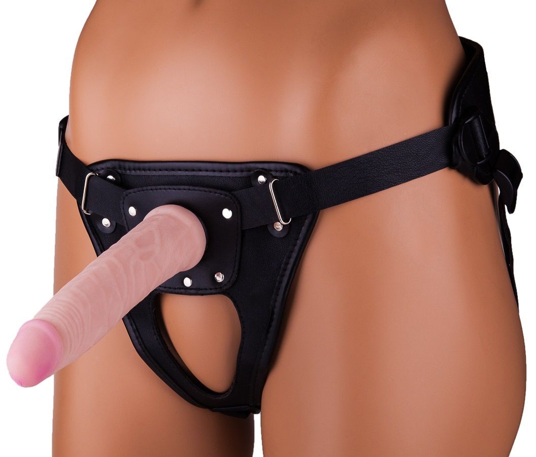 Телесный ультра реалистичный страпон с регулируемыми трусиками - 16,5 см.
