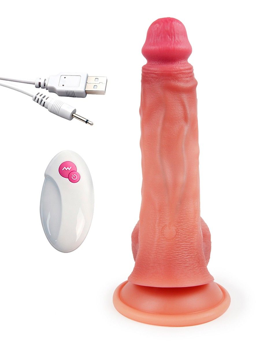 Телесный вибратор-реалистик с пультом ДУ - 23 см.