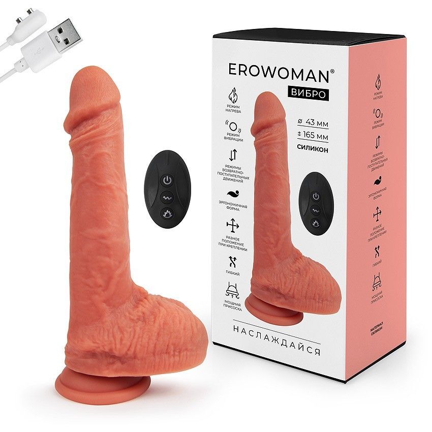 Телесный вибратор-реалистик с возвратно-поступательными движениями - 22,5 см.