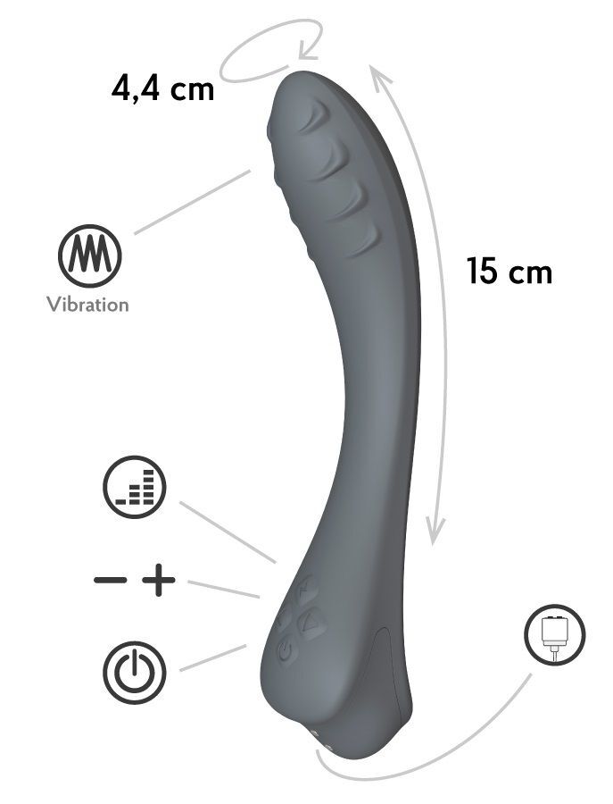 Темно-серый вибратор для G-точки Apus - 19 см.