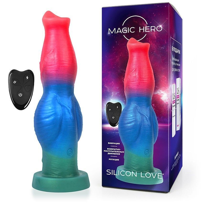 Цветной фантазийный вибратор с возвратно-поступательными движениями и ротацией - 26 см.