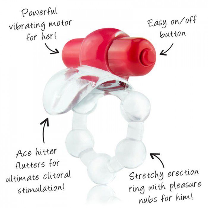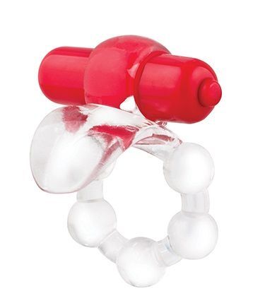 Виброкольцо с язычком и красным виброэлементом Overtime