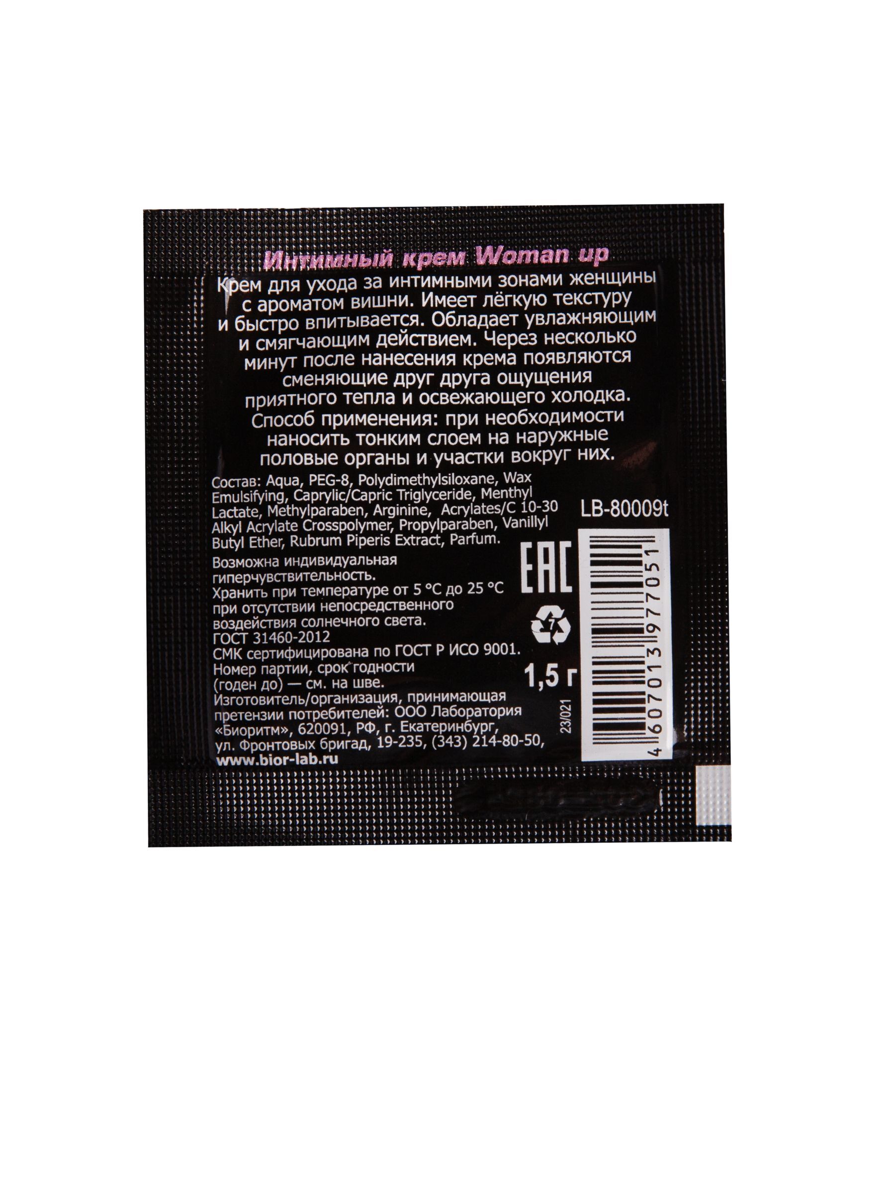 Возбуждающий крем для женщин с ароматом вишни Woman Up - 1,5 гр.