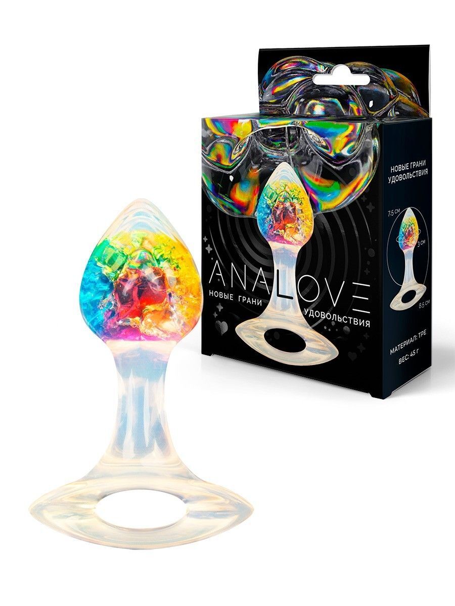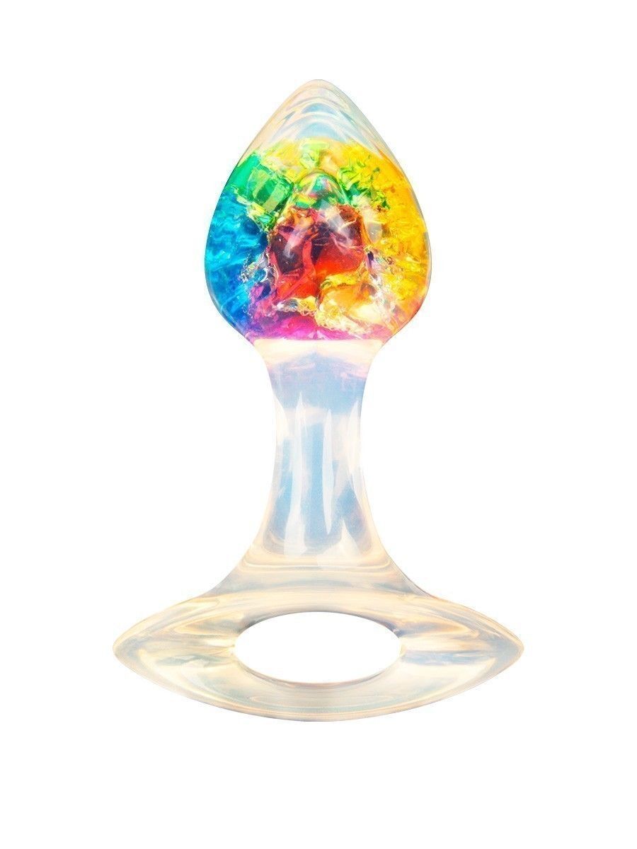 Яркая анальная пробка с ручкой - 8,5 см.