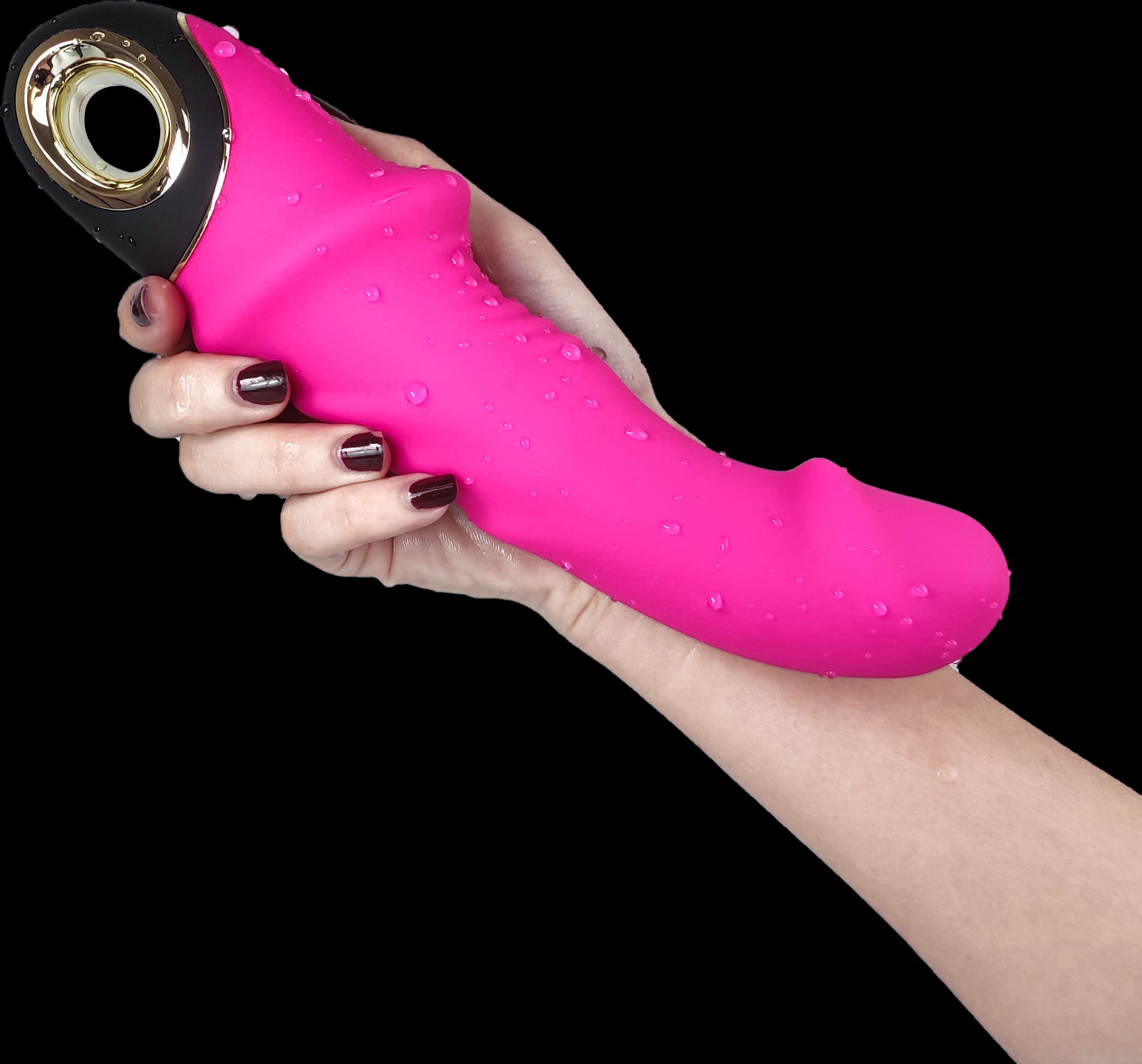 Ярко-розовый рельефный вибратор-реалистик - 22,5 см.