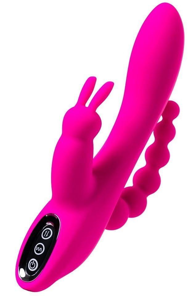 Ярко-розовый тройной вибростимулятор SPANKY - 21 см.