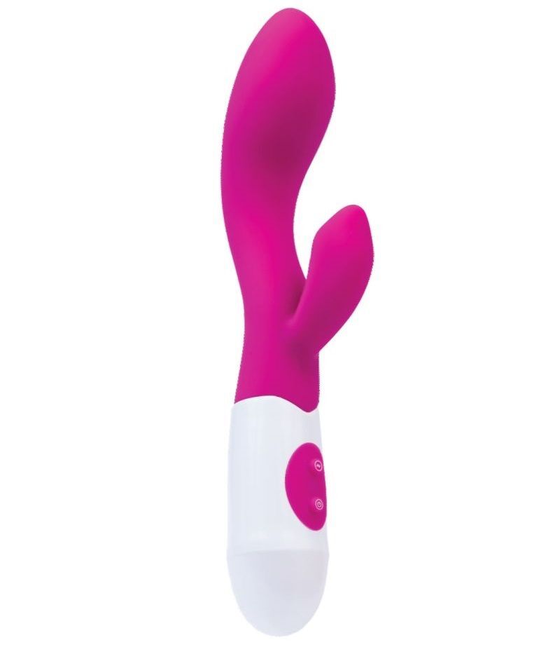 Ярко-розовый вибратор Fela с клиторальным стимулятором - 20,5 см.