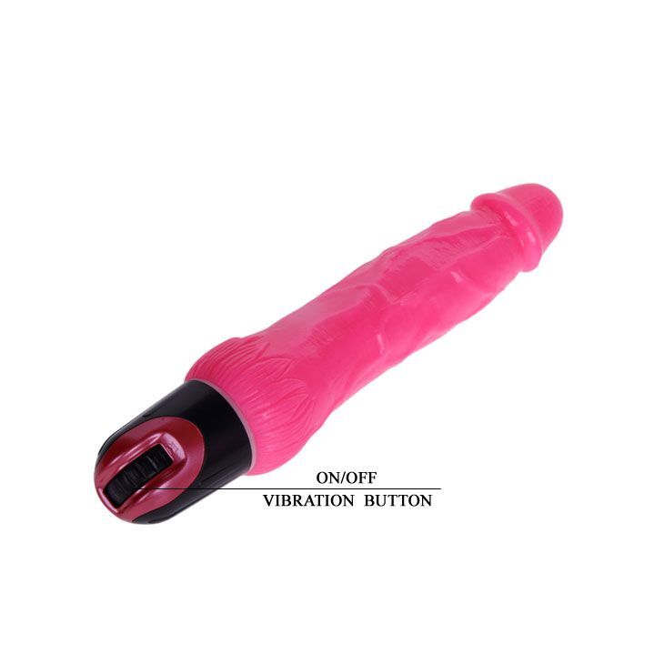 Ярко-розовый вибратор-реалистик с колёсиком - 24 см.