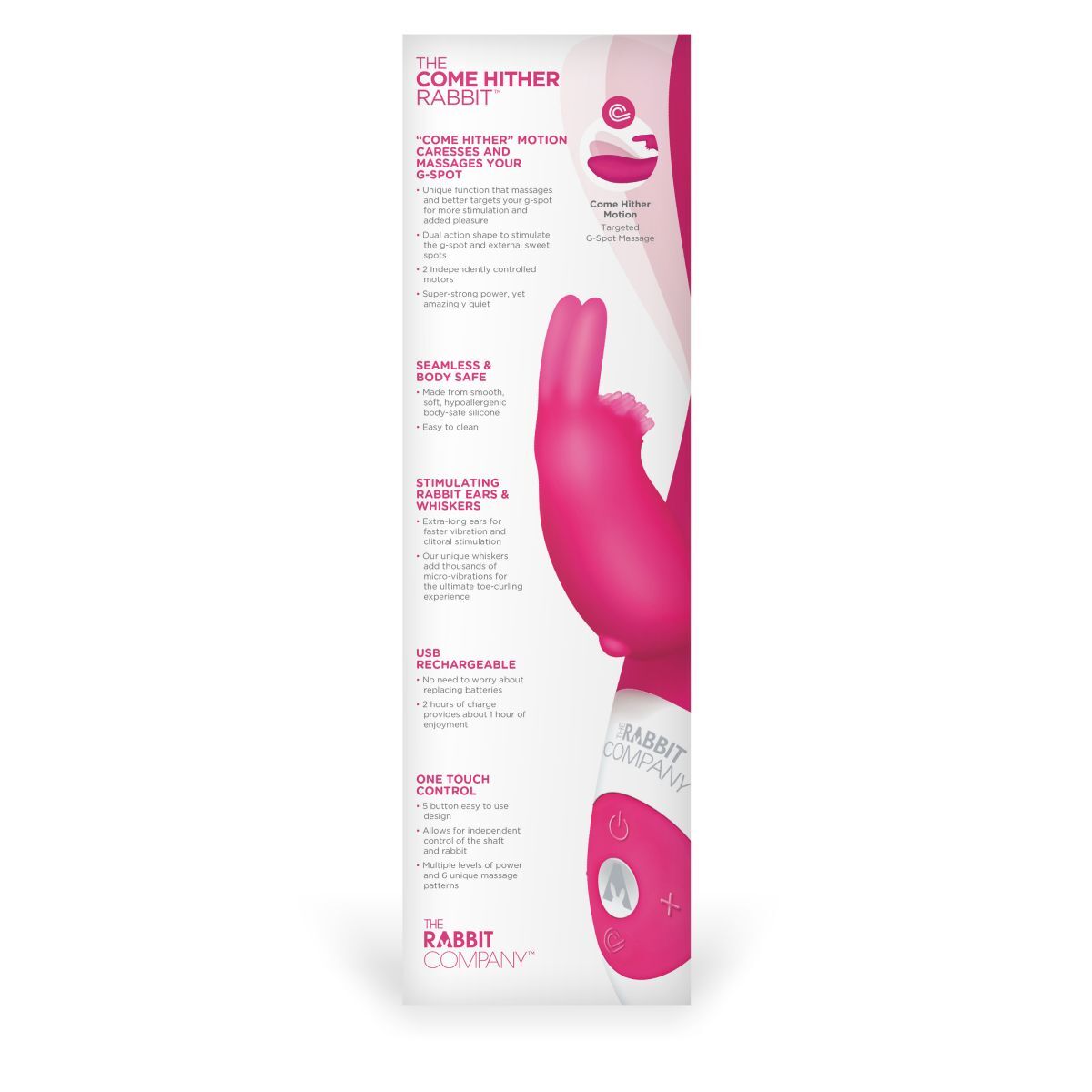 Ярко-розовый вибромассажёр The Come Hither Rabbit с клиторальным отростком - 22 см.