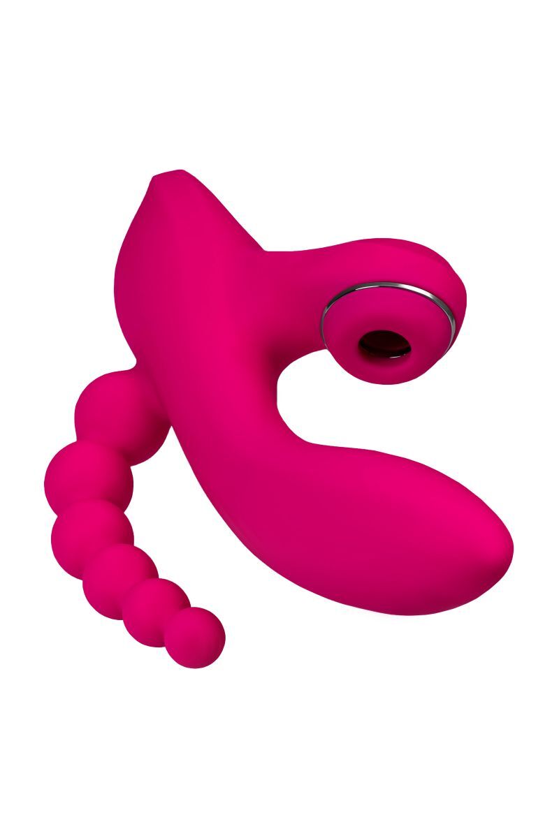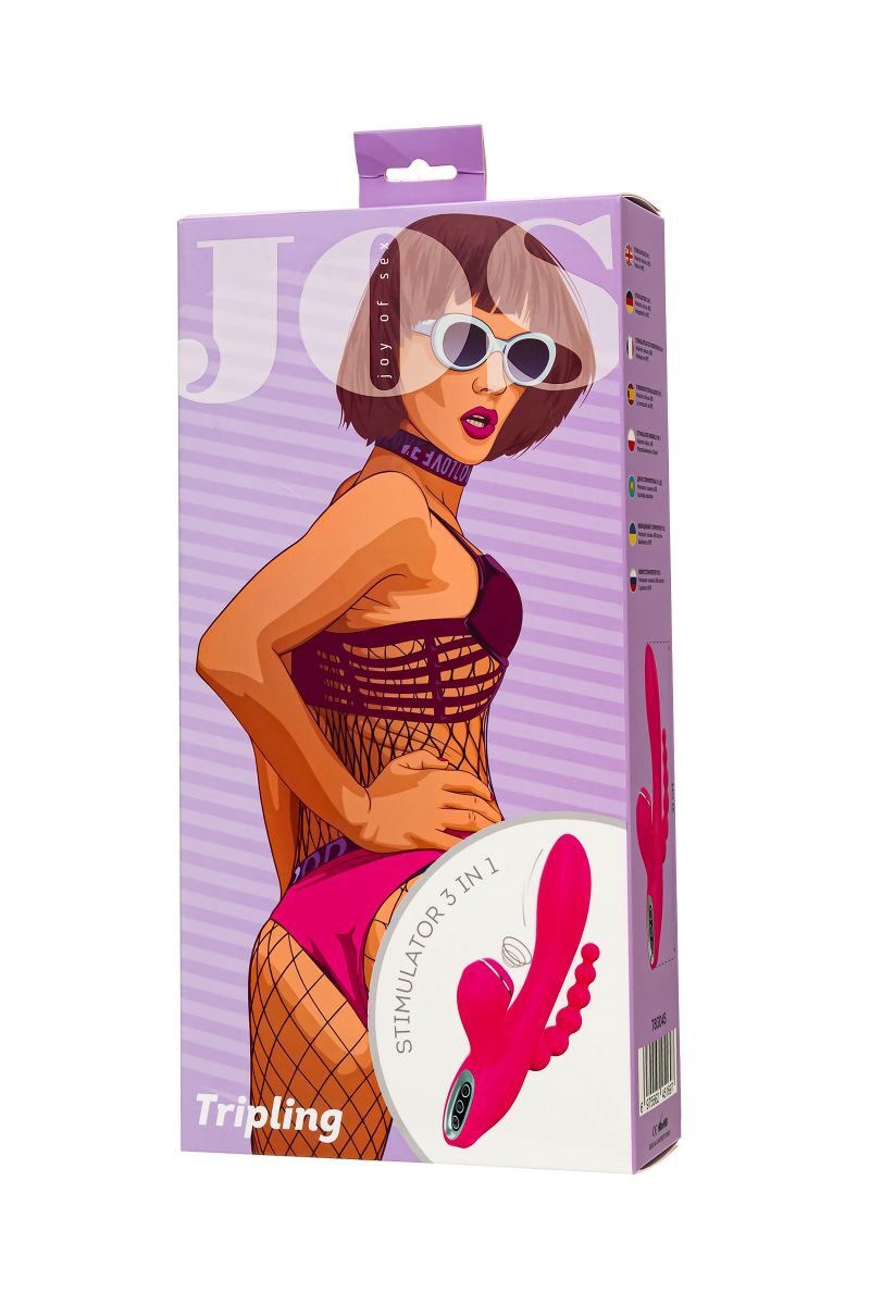 Ярко-розовый вибростимулятор 3-в-1 Tripling - 21 см.
