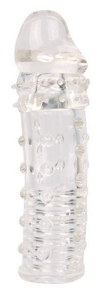 Закрытая прозрачная насадка-фаллос - 15 см.