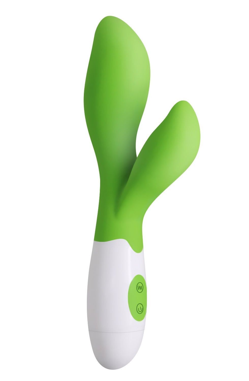 Зеленый вибратор Owen с клиторальным отростком - 20 см.