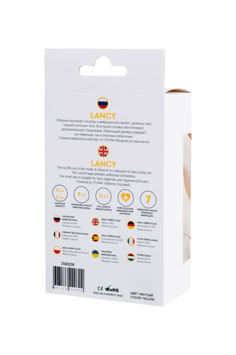 Желтая анальная вибровтулка Lancy - 11 см.