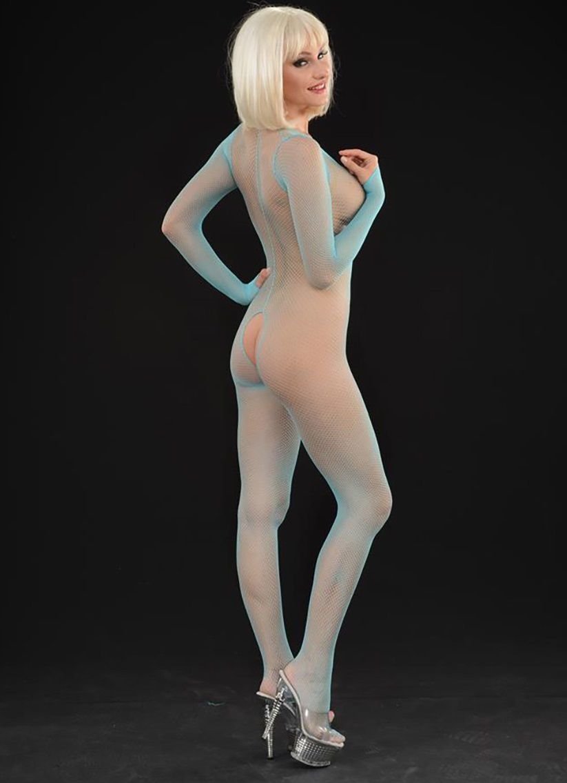 Женский кэтсьюит из мелкой сетки с глубоким вырезом
