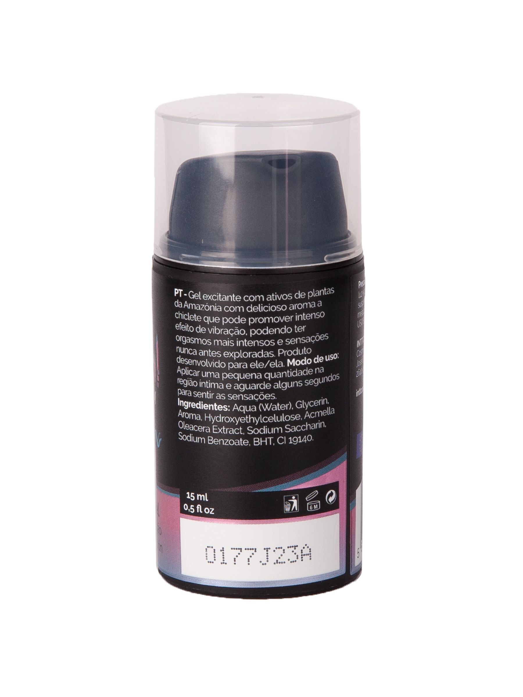Water, Glycerin, Hedroxyethylcelulose, Flavour, Acmella oleacera extract, Sodium Saccharin, Sodium Benzoate, BHT, CI 14700.
