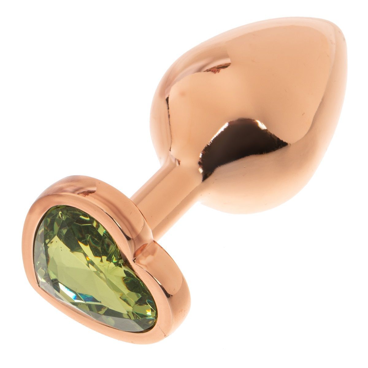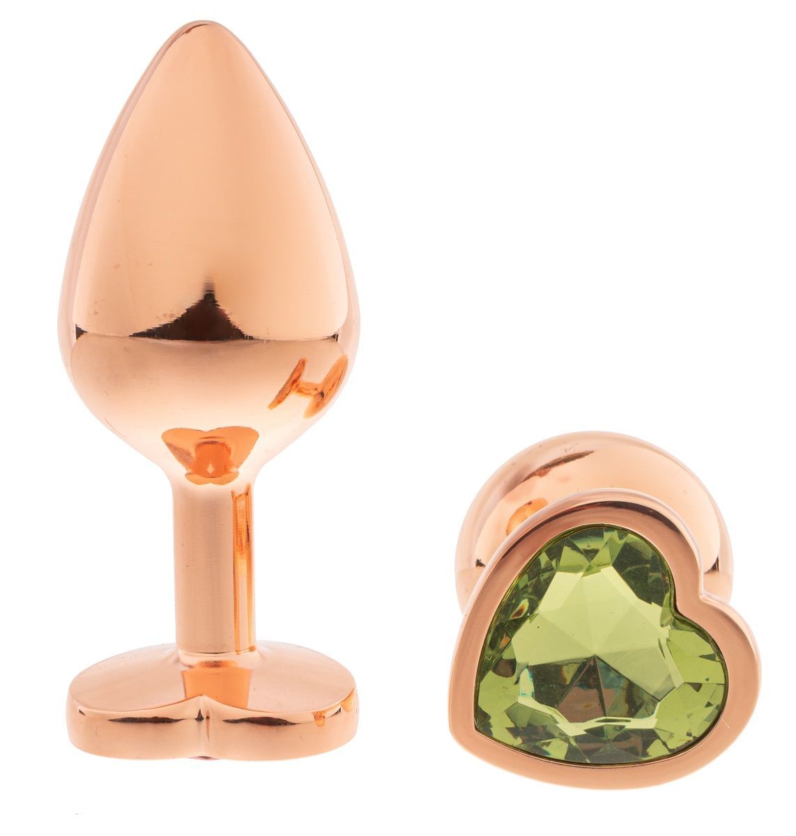 Золотистая анальная пробка OYO с зеленым кристаллом-сердцем - 7,3 см.