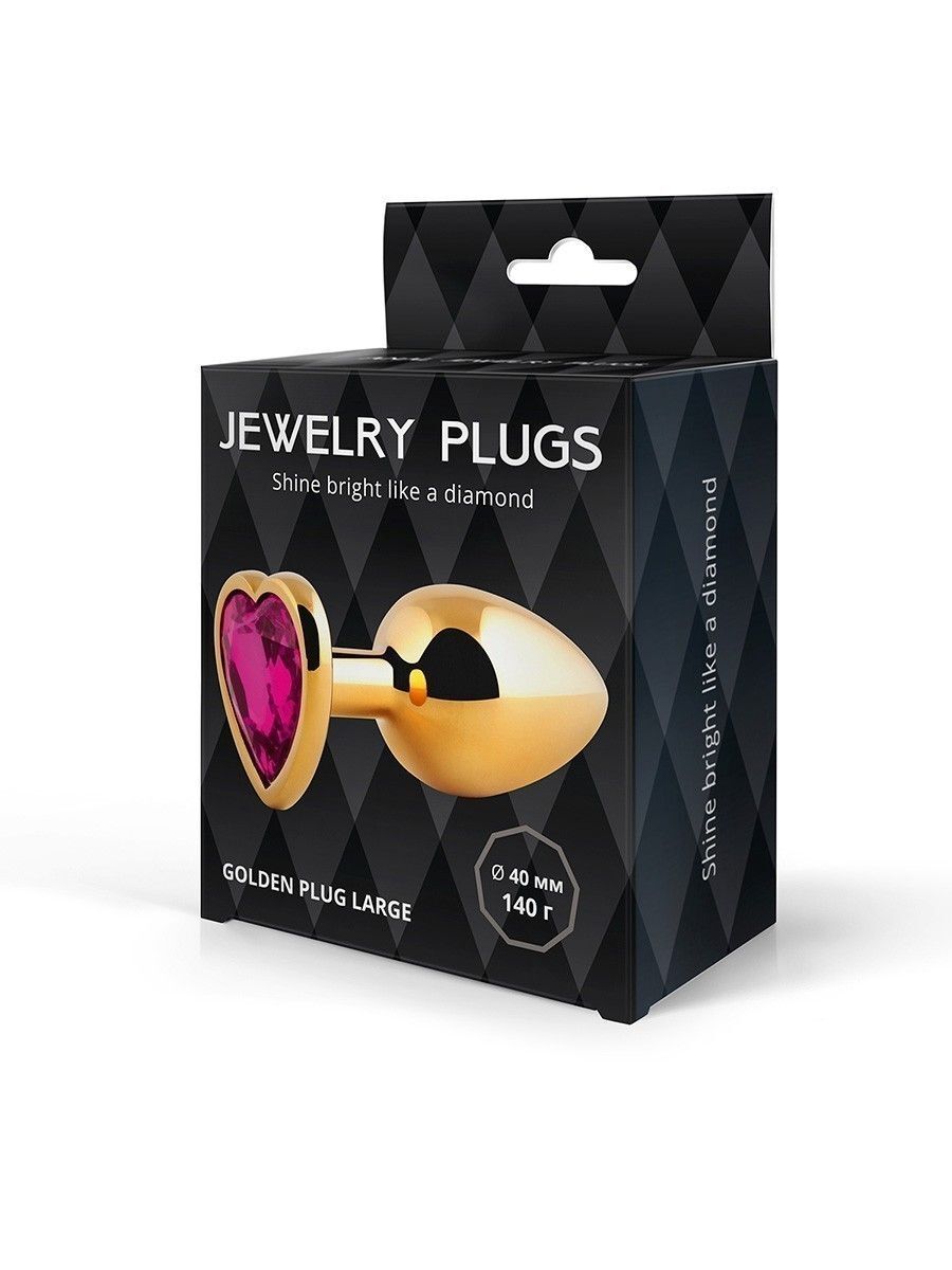 Золотистая анальная пробка с малиновым кристаллом - 9 см.