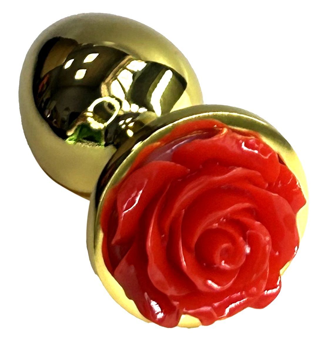 Золотистая анальная пробка с ограничителем в форме красной розы - 8 см.